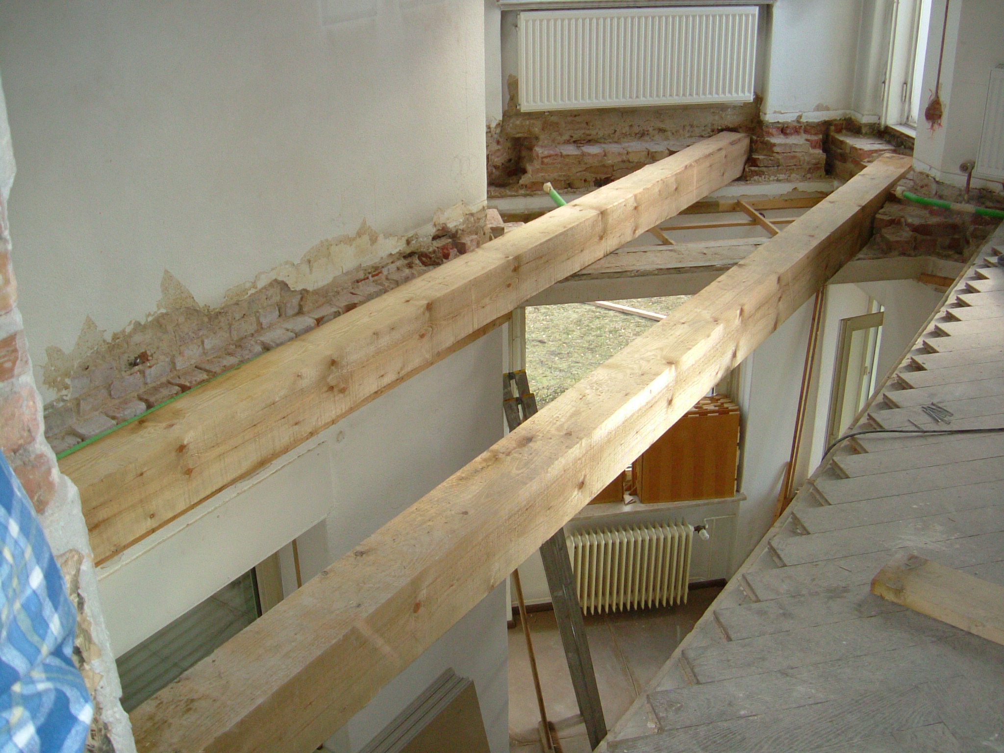 3. Schritt: Vor dem Einbau neuer Hölzer muss am Mauerwerk gleichfalls eine Sanierung stattfinden.