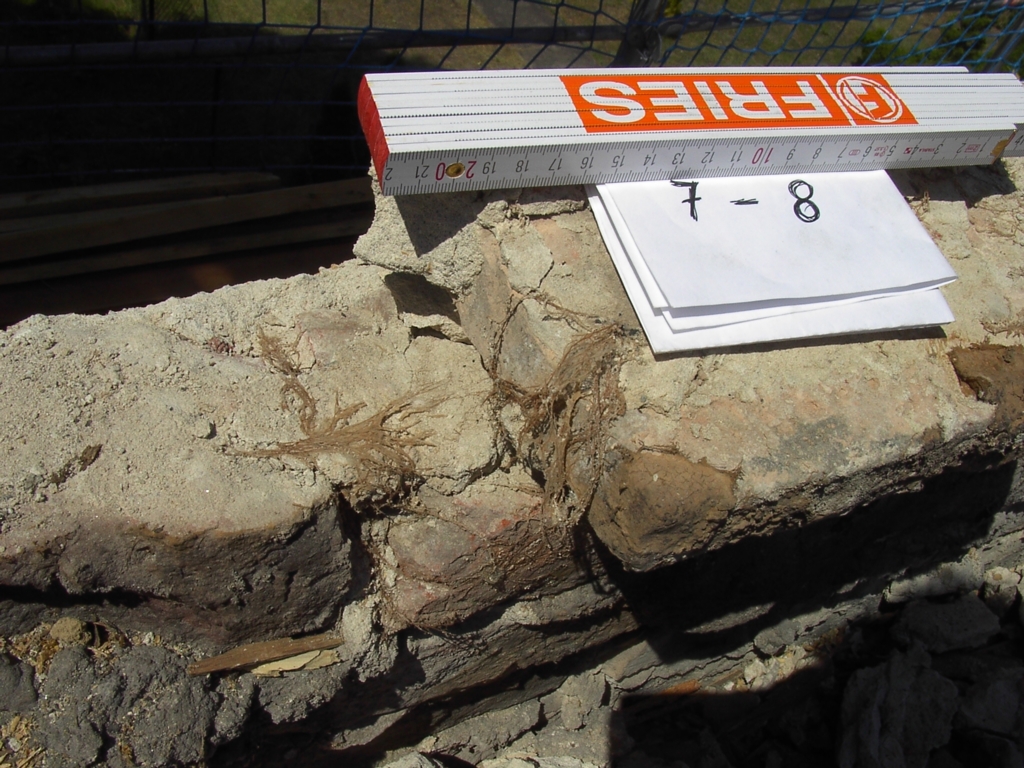 d. h. Abschlagen des Putzes bis Umkreis 1,50 m und auskratzen der Mauerwerksfugen. Danach erfolgt die Mauerwerkssanierung